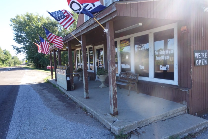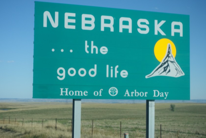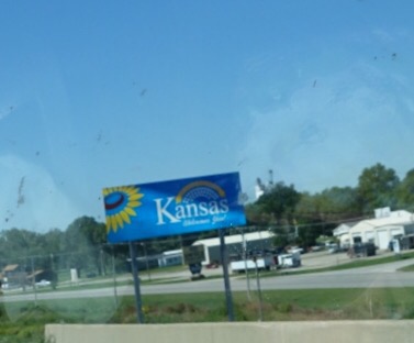 Then, because it was so close, I popped into Kansas. Literally in and out! But that counts! Then on into Missouri (no sign). If Nebraska was cows and hay – Missouri is trees and green and more trees. I bet Missouri has no forest fires – but lots of floods. Lots of waterways. The only dry things I saw were old cornfields.