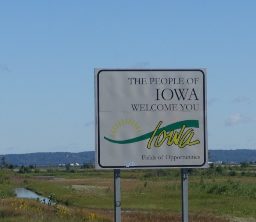 That’s me! I’m the blue dot… Can you believe how far I have come? I guess so, considering I’ve driven all day for two straight days. I woke up in Nebraska and before I landed in St. Louis, I hit two other states. Four states in one day (not the easy, 4 corners way)! The highway took me into Iowa. I stopped to take a picture of the sign because my step dad Brian is from Iowa! Yay Iowa! It’s tough to take pictures of state line signs – often you just can’t stop.